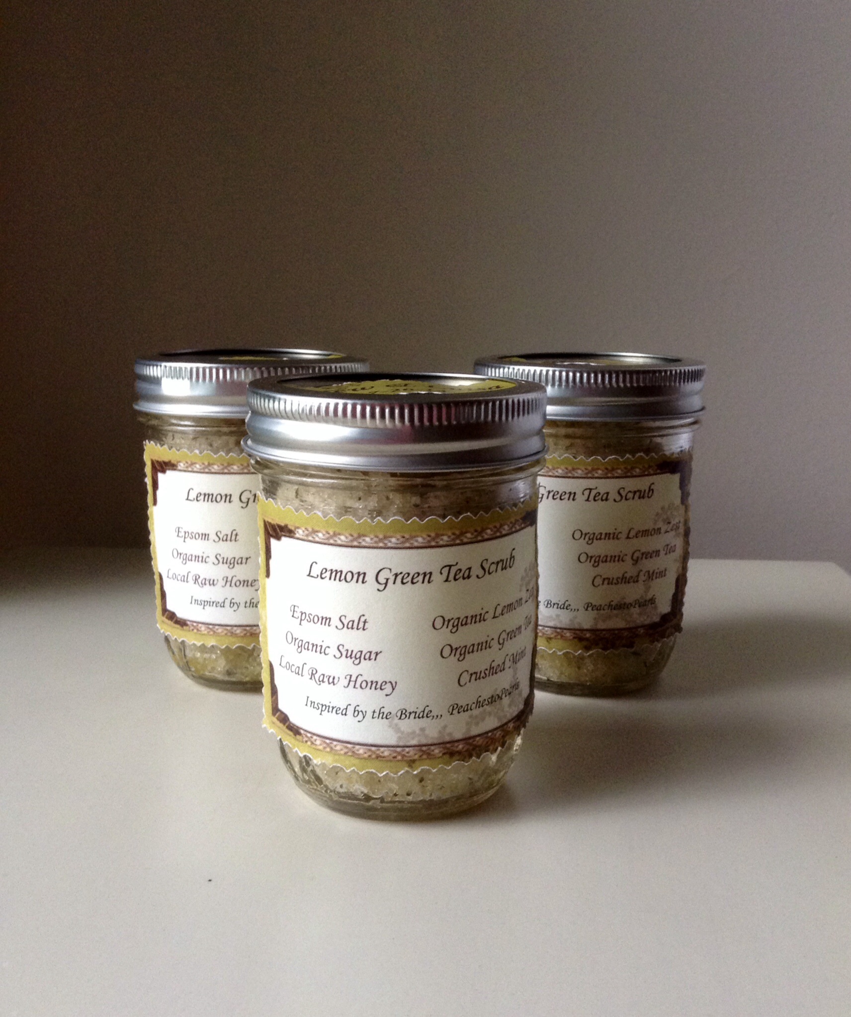 Every detail was beautiful-down to the beautiful linen napkins that were used. Haley’s lovely Mamma even got ribbon with mine and Andrew’s name on it! She used the ribbon to make a bow on tiny golden boxes that held a piece of fine chocolate. One of my bridesmaids was so sweet and made homemade body scrub and gave them as party favors! I am truly blessed to have such wonderful women in my life.